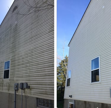Right Cleaning Solutions: Exterior home cleaning often requires specialized solutions to kill mold and mildew at the root—not just blast it off temporarily. Professional soft washing uses Sodium Hypochlorite (SH) mixed with surfactants for surfaces like siding and roofs, while pressure washing uses appropriate degreasers for concrete surfaces. Simply spraying water won't eliminate organic growth permanently.